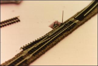 Description : The switch machine mounts on the bottom of the turnout. With a Styrofoam base, the switch machine fits into a space cut out for it.