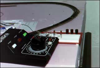 A 20-year-old power supply actually runs the layout quite happily. The breadboard behind it has mostly been used for experimentation; right now it can run the layout (briefly) as well.