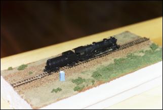 The fundamentals: a 6"x12" piece of Styrofoam, a 4-6-2 Pacific, and a porta-potty.