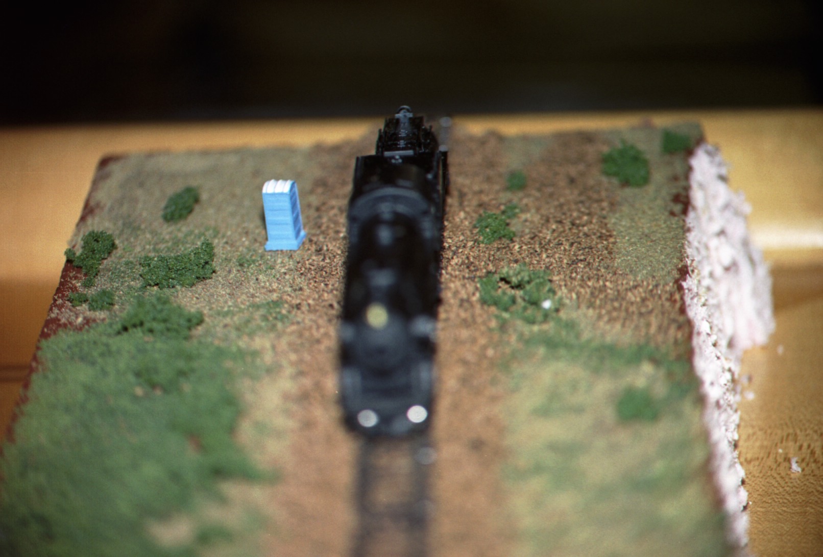 Looking at the front of the train. Focus is hard.