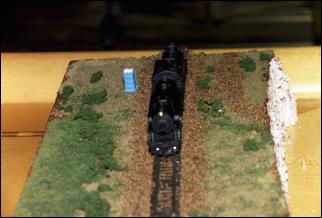 The demo track, looking at the front of the train. The Styrofoam doesn't necessarily cut cleanly.