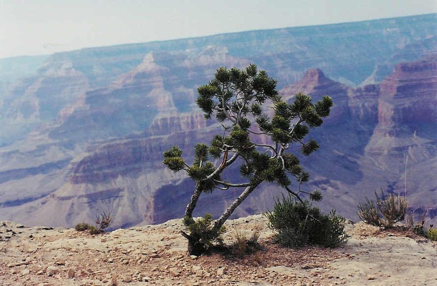 A small joshua tree on the edge of the Grand Canyon.