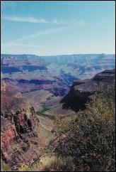 Description : Looking down along the Bright Angel Trail, which is visible here. The green patch in the very middle is Indian Garden, which is the longest recommended day hike, and then only if you leave before 7 AM. The 1 1/2 and 3 Mile Resthouses are much closer in, but not visible here.