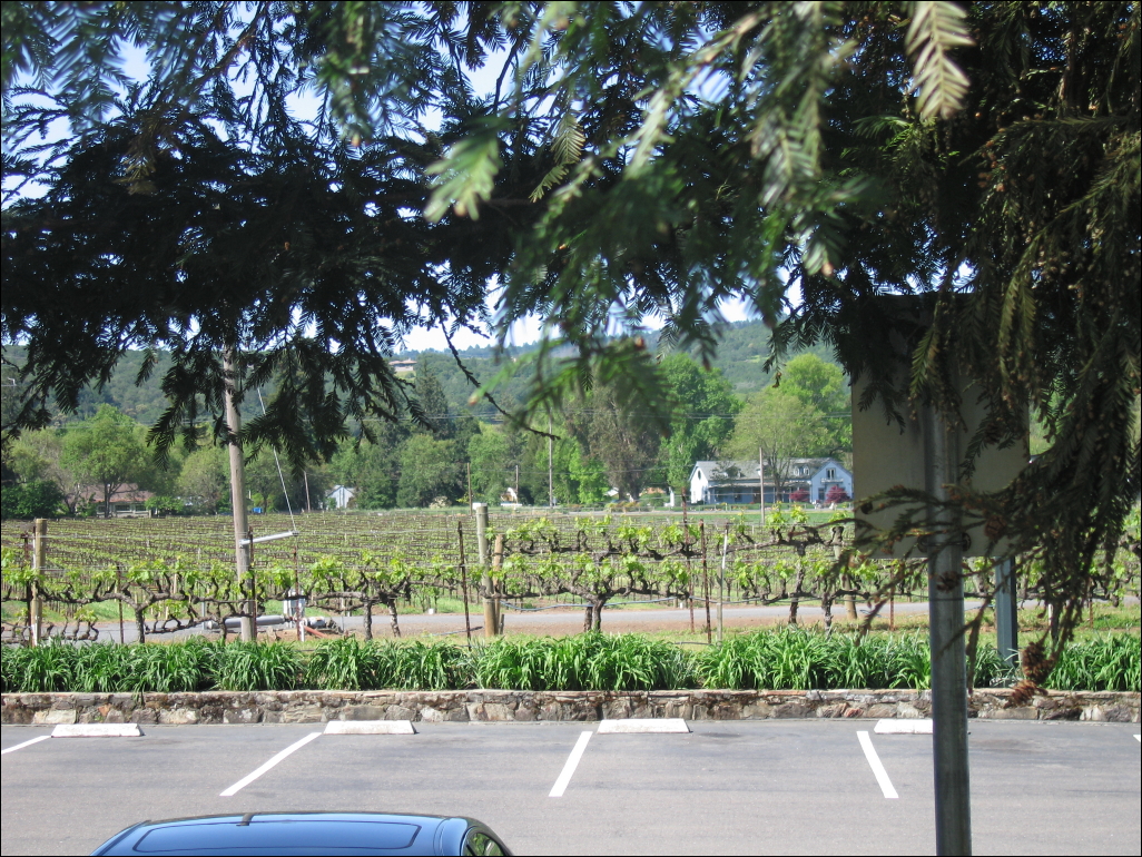 In between the parking lot and the main road are acres of grapes.