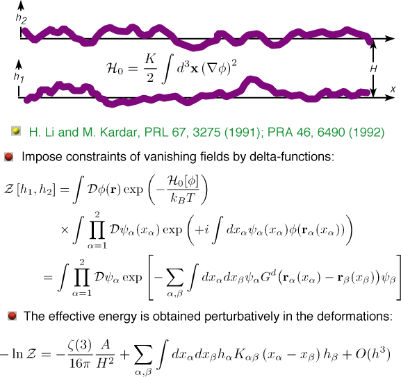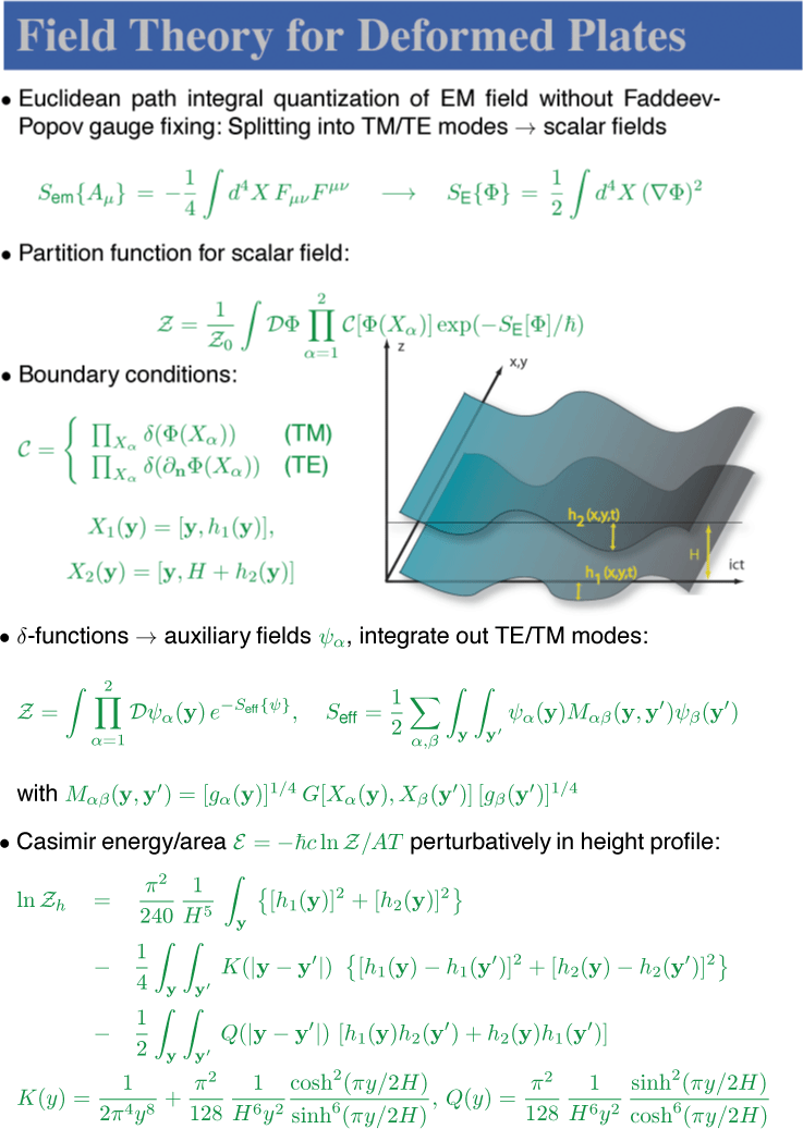 by path integral methods (for thermal scalar fields, and by decomposing the QED field into TE and TM modes).