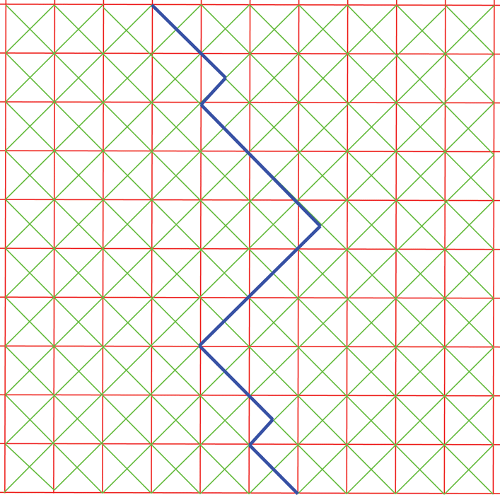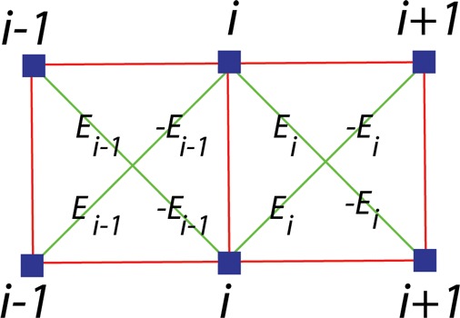 For ease of computation the random energies on the (green) bonds of the vertex model are selected as: