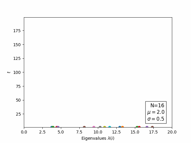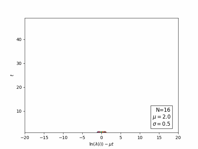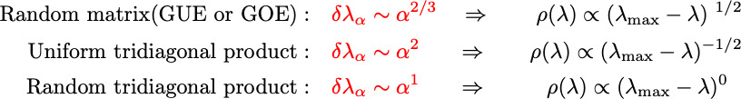 (Sidenote: while the product of tridiagonal random matrices is not symmetric, all eigenvalues remain real and positive!)