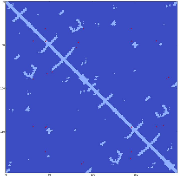 (9 out of top 40 pairs correspond to contacts in the dimer) (ala Martin Weigt)