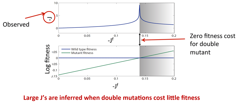 Strong direct couplings indicate compensatory mutations of fitness close to wild type: