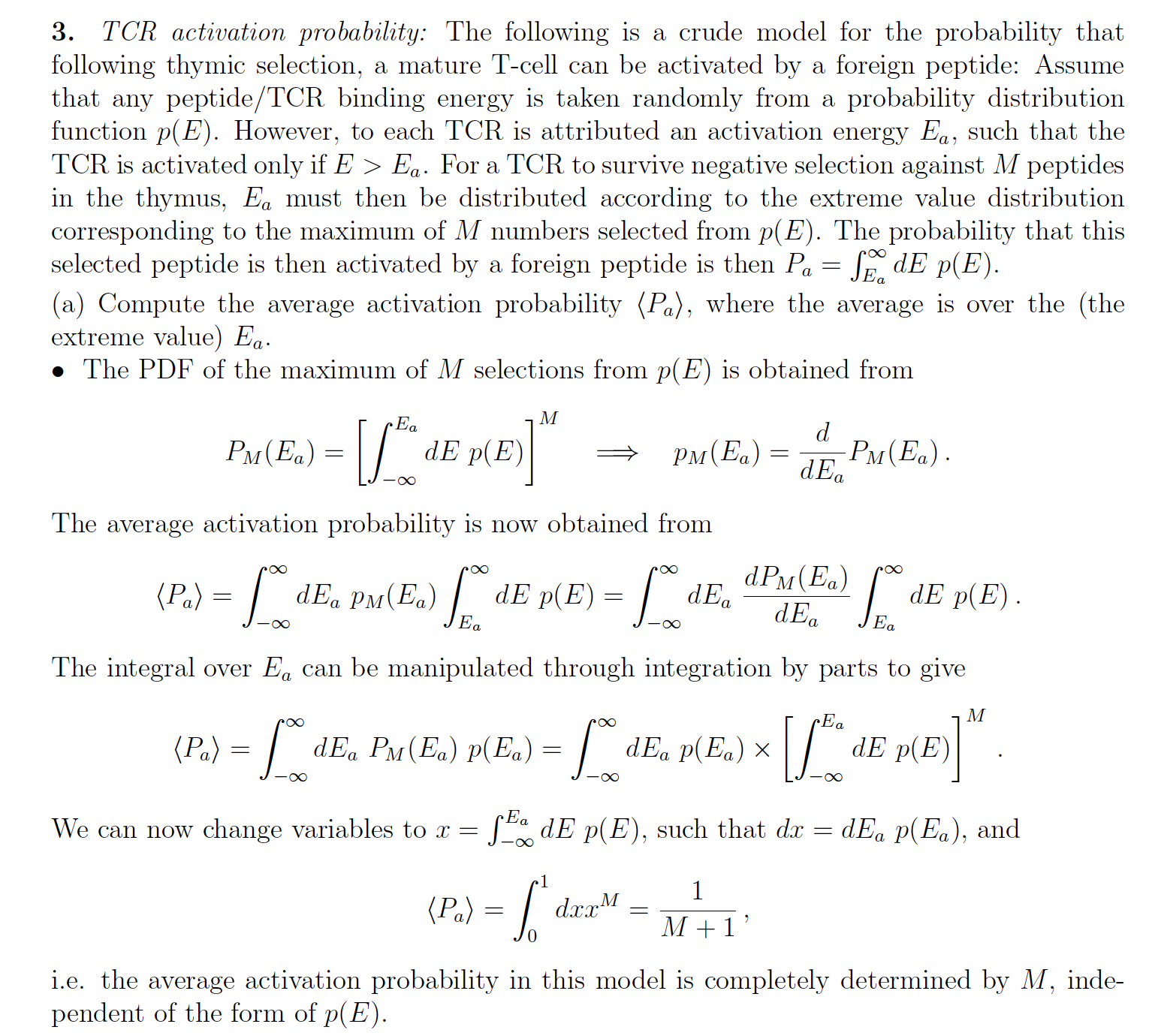 Assume that a fraction M/P of all possible self-peptides P are encountered in the thymus;