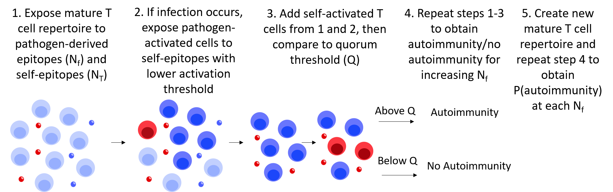 Probability for onset of autoimmunity increases with the number of foreign peptides presented: