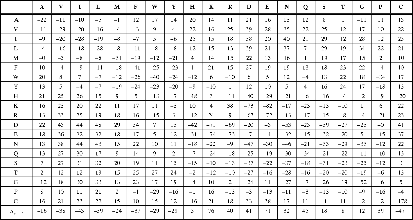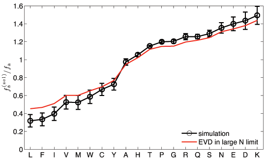 The "interaction" depends only on the sum of variances for the individual amino-acids