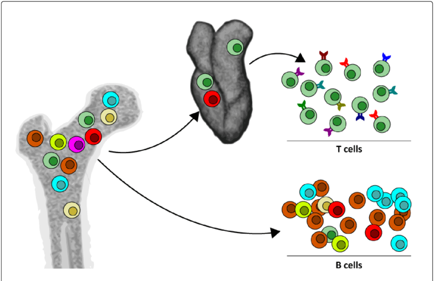 where a diverse repertoire of thymocites (expressing distinct TCRs, produced by random recombination)