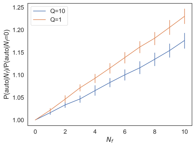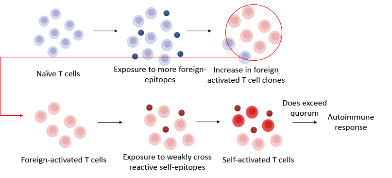 Probability for onset of autoimmunity increases with the number of foreign peptides presented: