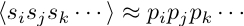 Such `linkage equilibrium' is achieved in population genetics if the sequence elements are completely reshuffled post replication, i.e. for infinite recombination rate [Neher & Shraiman, Rev. Mod. Phys. 83, 1283 (2011)] (offline)