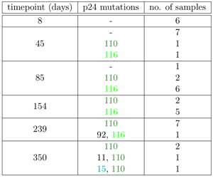 Blood samples extracted at several time points to determine HIV sequences; T cell responses were also mapped.