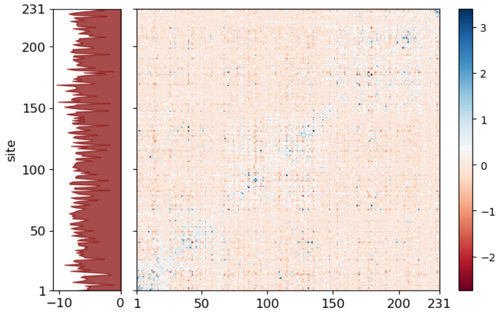 [binary (0 for consensus, 1 for mutant) of length L] including one site and two site terms.