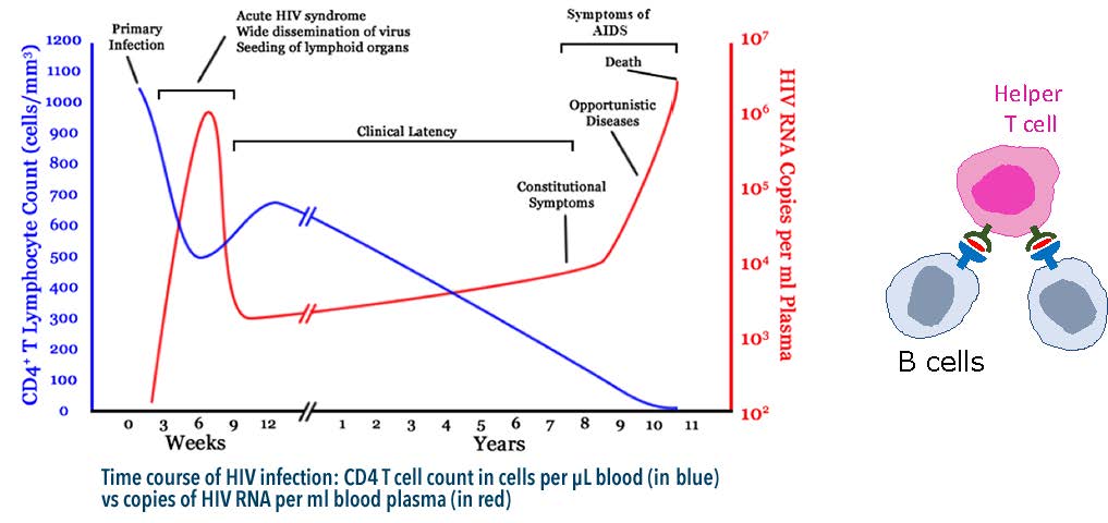 The low spike density of HIV may have evolved because of the effects of T helper cell depletion on affinity maturation