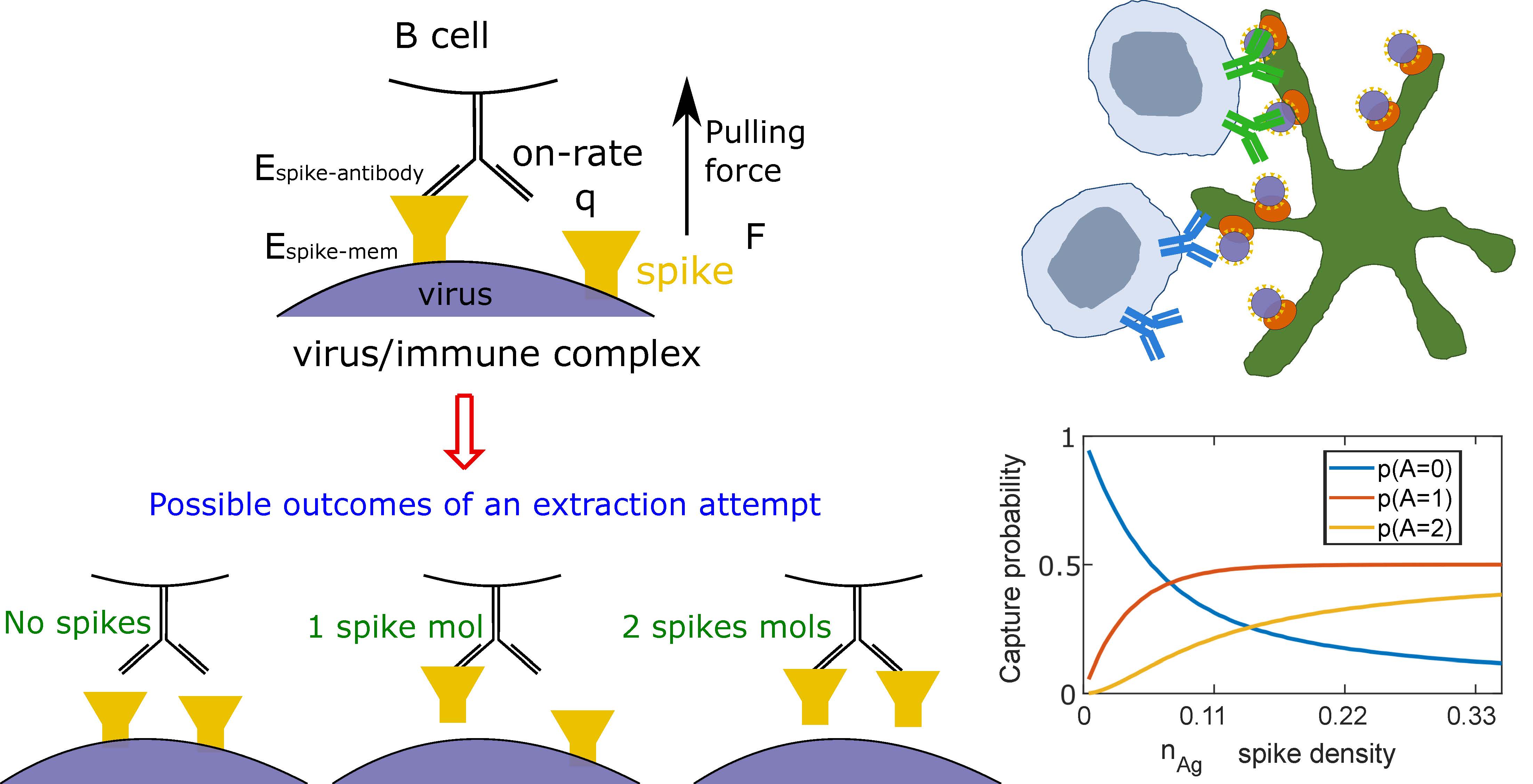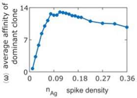 Optimal affinity is achieved at target (spike) density of less than ~1 per area spanned by the B cell receptor.