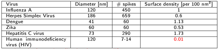 Spike density of some viruses: