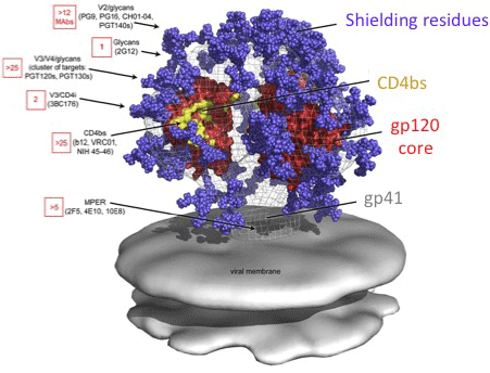 The HIV spike, the target of most antibodies, is shielded by easily mutable (low fitness cost) residues.