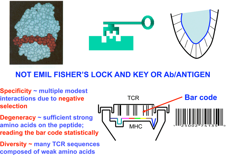 II. Thymic Selection: positive and negative selection, specificity from weak amino-acids, extreme value distribution