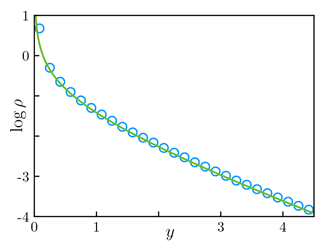 Demographic stochasticity draws in the distribution to (a delta-function at) the absorbing state y=0