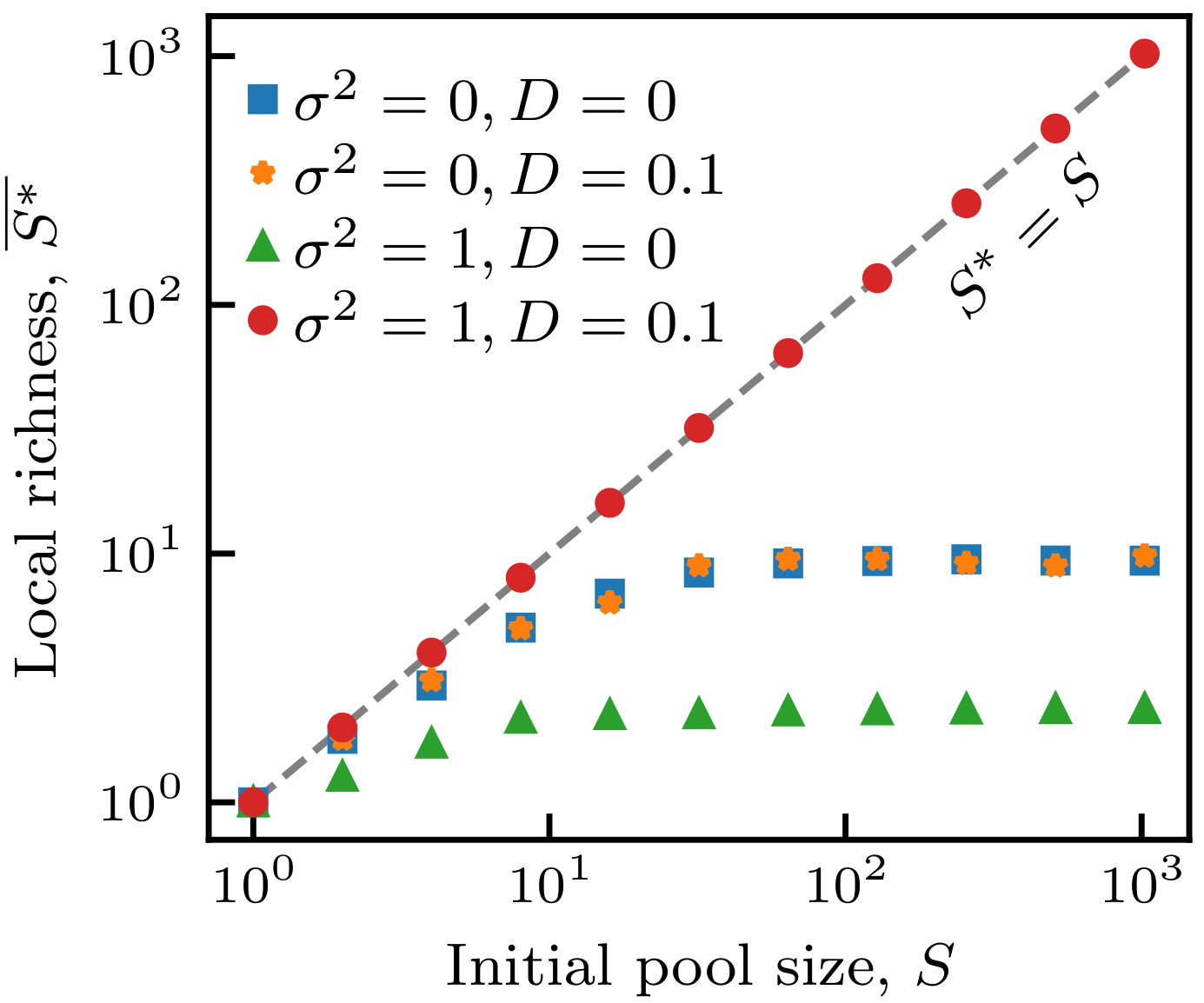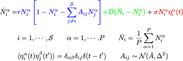 each patch subject to independent growth rate fluctuations, with equivalent migrations between patches.