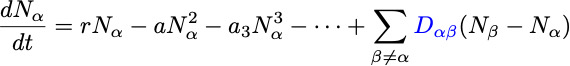 Allowing for migration/dispersal/diffusion leads to a set of equations: