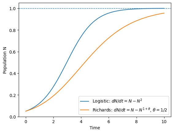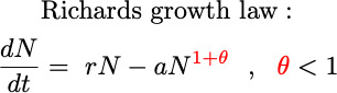 I. Population dynamics: Growth & saturation (logistic to Richards), migration and stochasticity (demographic and seascape)
