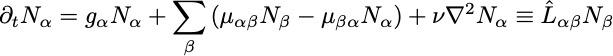 However, the overall population at each location grows (decays) exponentially in time: