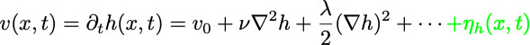 The expansion velocity can be stochastic, and depend on the shape of the front (curvature and slope in a "gradient" expansion):