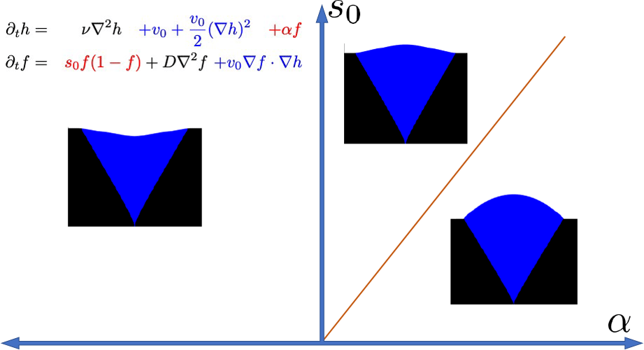 We may phenomenologically postulate that the invasion velocity is modified by the coupling to the profile as