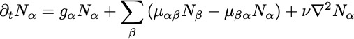 The overall population at each location grows (decays) exponentially in time: