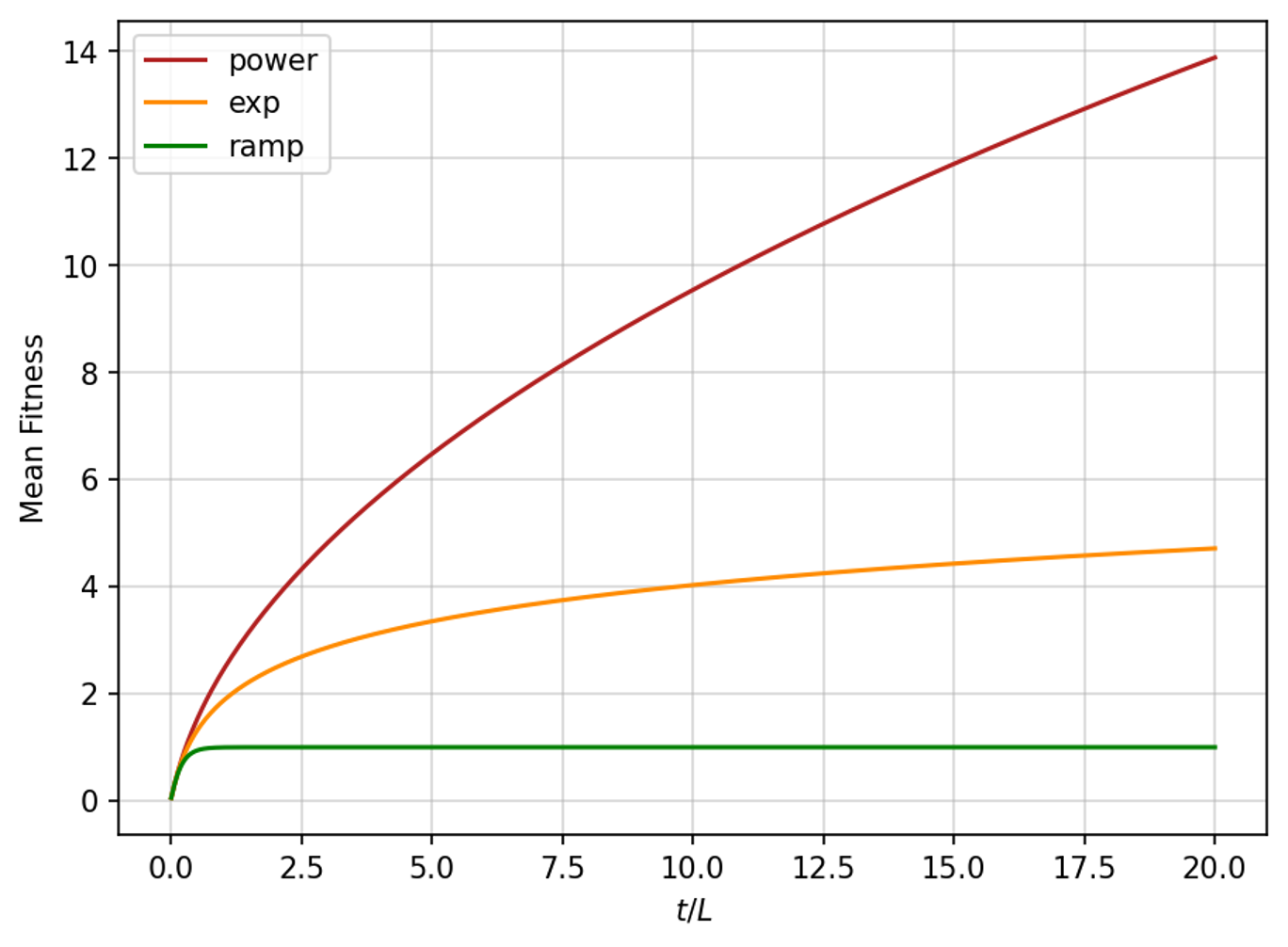 By analogy to the "height" of a growing surface, we expect the mean fitness to grow in time,