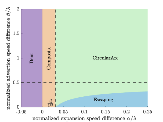 Speed of the fitter species can actually be reversed by the growth advantage of the less fit species, leading to morphology phase diagram: