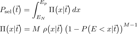 Due to the shaprpness of the distibution in the large N limit, the seletion condition can be written as: