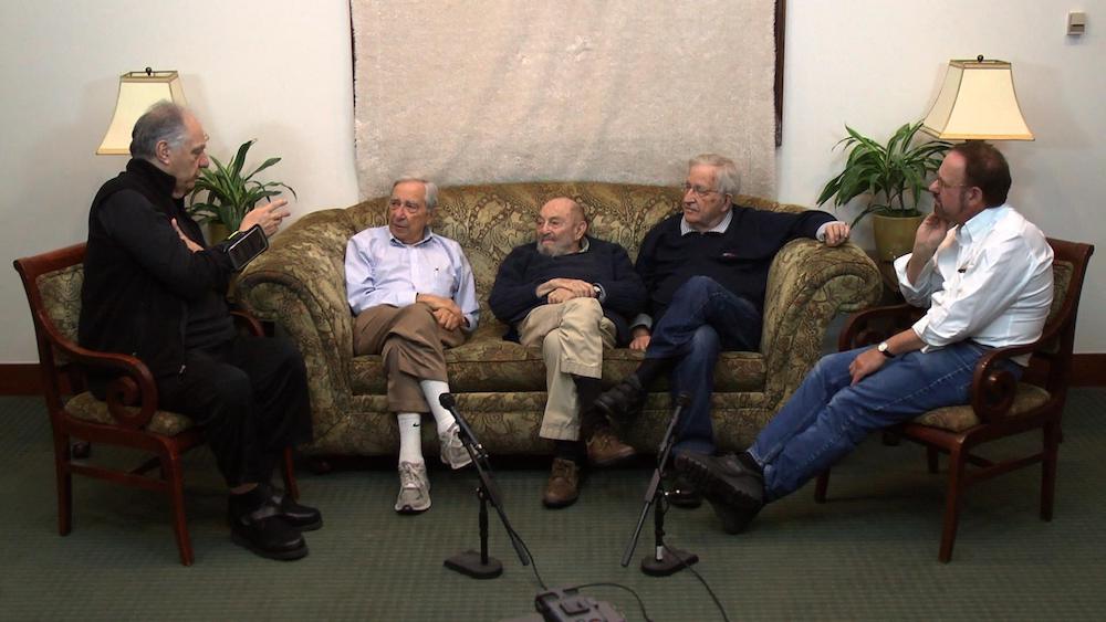 group photo, left to right: Samuel Jay Keyser, Sylvain Bromberger, Morris Halle, Noam Chomsky, Robert Berwick