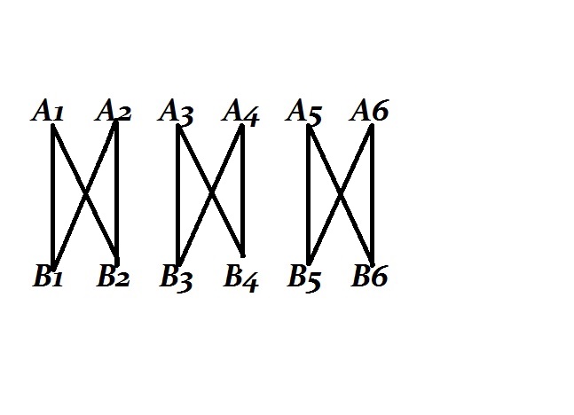 If A1 and A2 for instance are both associated with the parry B1, and if A1 is likewise associated with the parry B2, it will generally happen that A2 and B2 will also themselves be associated.