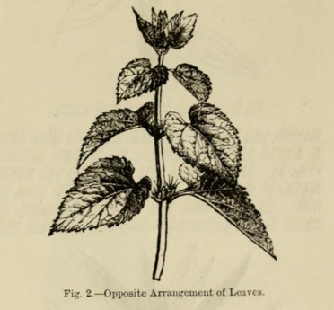 In other cases, a node appears to support two leaves --- one on one side, another on the other side of the axis : the term opposite is applied to such cases (Fig. 2).