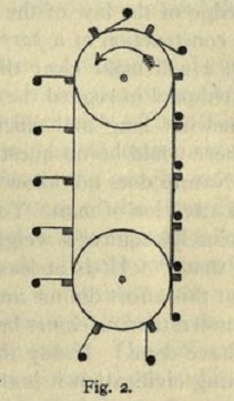 The collection of constructions of perpetual motion machines preserved in the Technical Museum at Munich must be very instructive from a psychological point of view, as far as they can be deciphered. When I was a boy I had heard so much about perpetual motion that at a time when I had only a very superficial knowledge of the law of the lever I zealously set to work on the construction of a perpetuum mobile. The drawing in Fig. 2 will make clear the construction and its error.