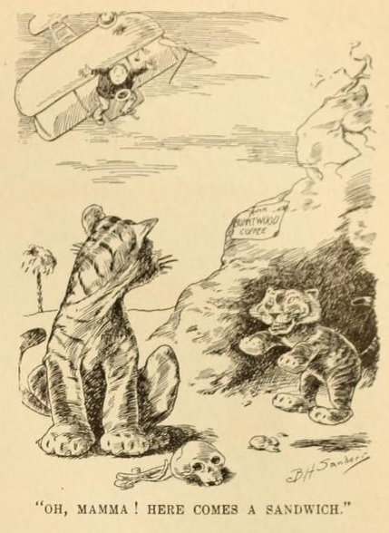 Every year the Leslie-Judge publishing house would issue an annual containing what were deemed the best items to appear in Judge and its sister publications; the extracts below come from the 1911 edition. Reading such a yearbook can make one feel that 1911 was yesterday -- some of the same jokes circulate on the internet today. It can also make one feel that 1911 was a very long time ago indeed. The political items are especially confusing; Judge was staunchly Republican, but the Republican Party of 1911, no longer recognisably that of Lincoln, was not yet recognisably that of Nixon, much less of Reagan or Bush. Opinions which now seem at odds were advocated without sense of contradiction. Idealistic calls for universal human rights and warnings against the dangers of capitalism shared space with apalling "darkie" stories depicting Blacks as repulsive comic beings slightly lower than monkeys on the evolutionary scale; jokes about dizzy blondes and shrill mothers-in-law and photos of Broadway actresses in (by 1911 standards) revealing costumes appeared beside calls for female suffrage and recognition of women as men's equals.