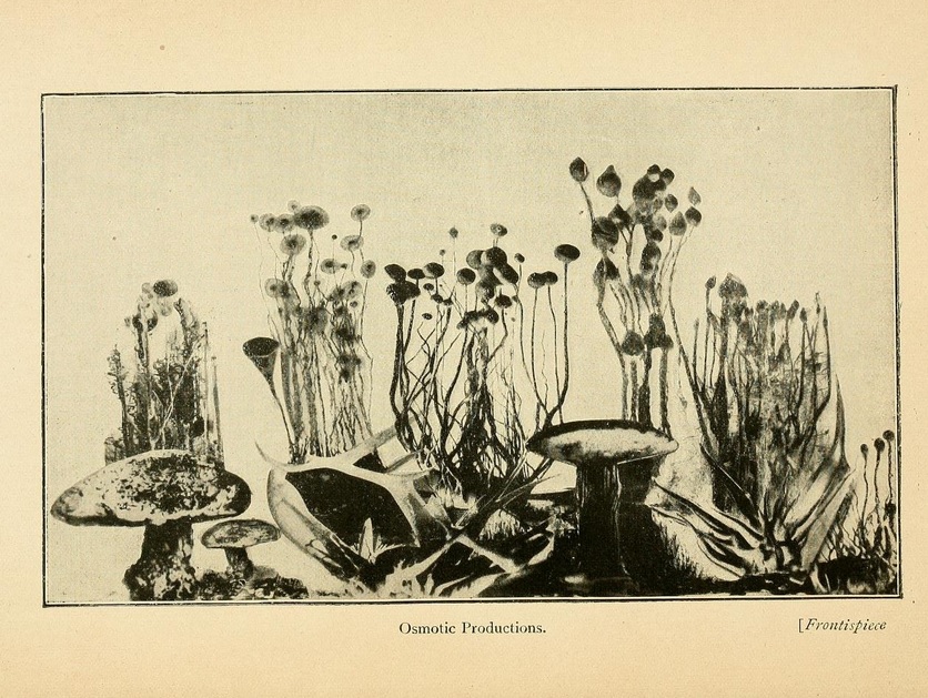 The various silicates play an important part in the constitution of shells and of the skeletons of marine animals. Most of the metallic salts, and more especially the soluble salts of calcium, give rise to the phenomenon of osmotic growth when sown in solutions of the alkaline silicates. In this way, by using different silicates and varying the proportions and the concentrations, we may obtain an immense variety of osmotic growths.