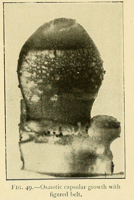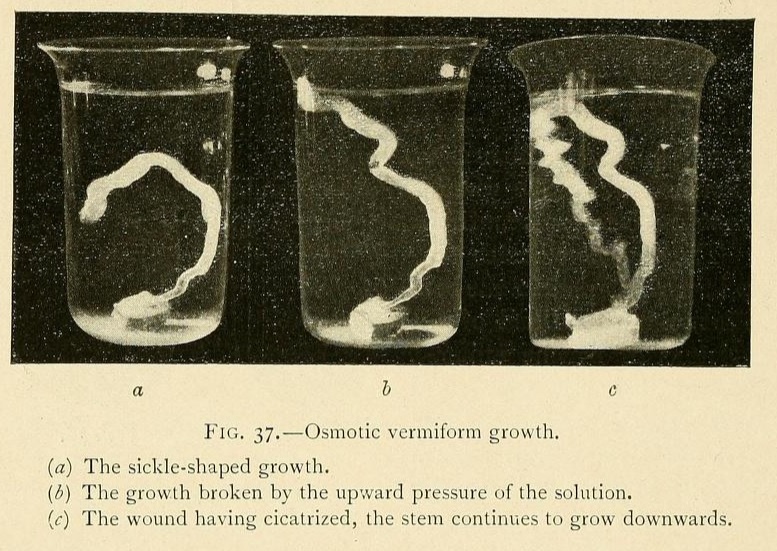 We now know that the physical force which builds up these growths is that of osmotic pressure, since the slightest consideration will show the inadequacy of the usual explanation that the growth is due to mere differences of density, or to amorphous precipitation around bubbles of gas. These may indeed affect the phenomenon, but can in no way be regarded as its cause.