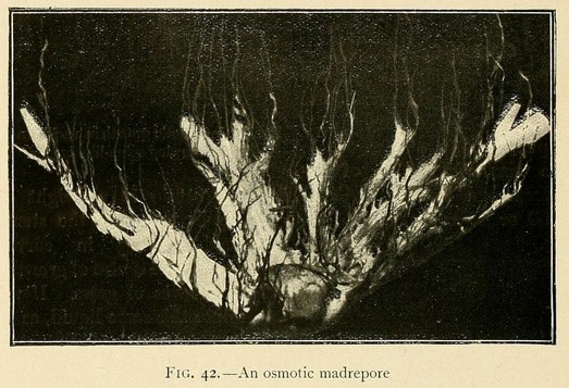 Whatever our opinion as to its signification, osmotic growth demands the attention of every mind devoted to the study of nature. It is a marvellous spectacle to see a formless fragment of calcium salt grow into a shell, a madrepore, or a fungus, and this as the result of a simple physical force. Why should the study of osmotic growth attract less attention than the formation of crystals, on which so much time and labour has been bestowed in the past ?